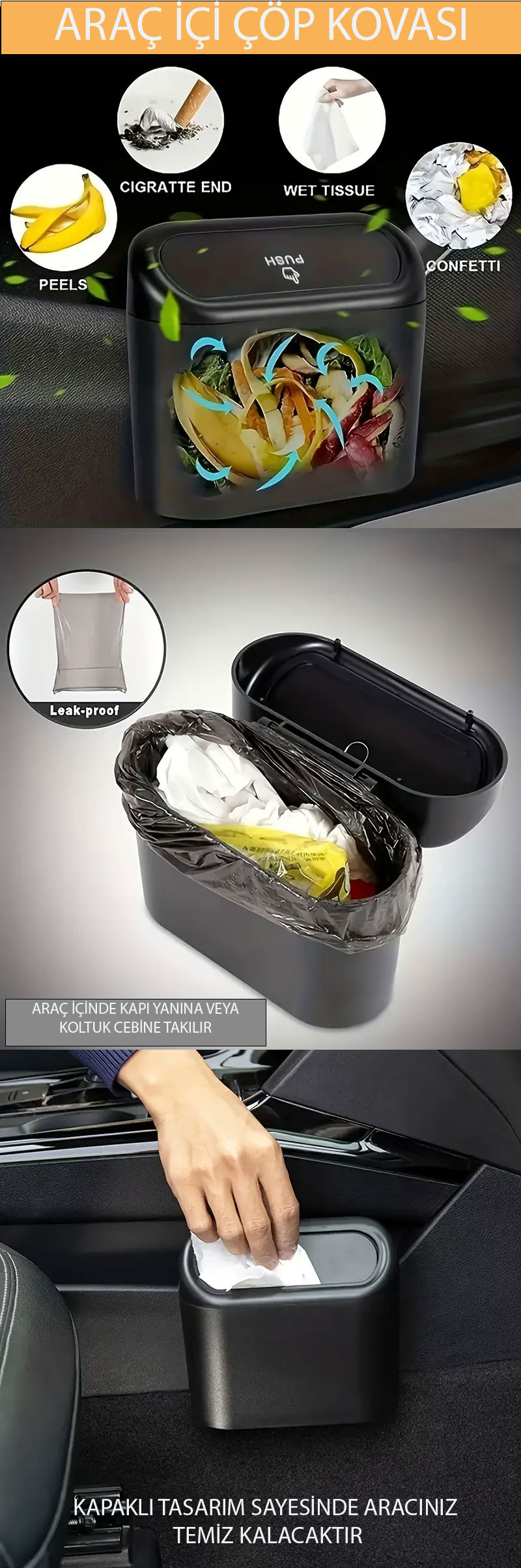 3 Adet ARAÇ İÇİ ÇÖP KOVASI -